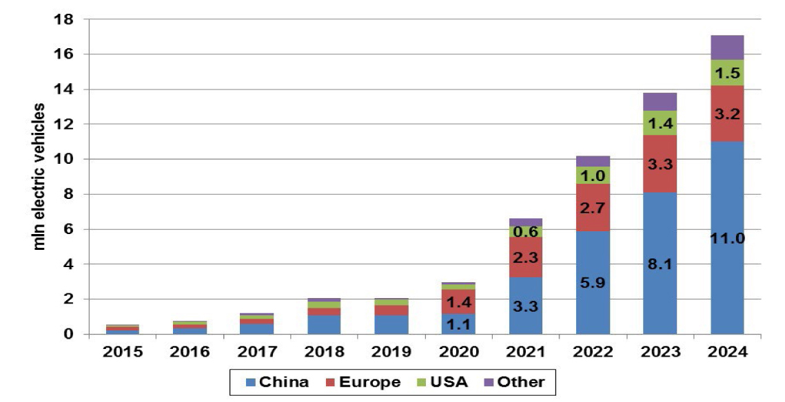 Figure 1. Dynamics of Passenger Electric Vehicles’ Sales, mln